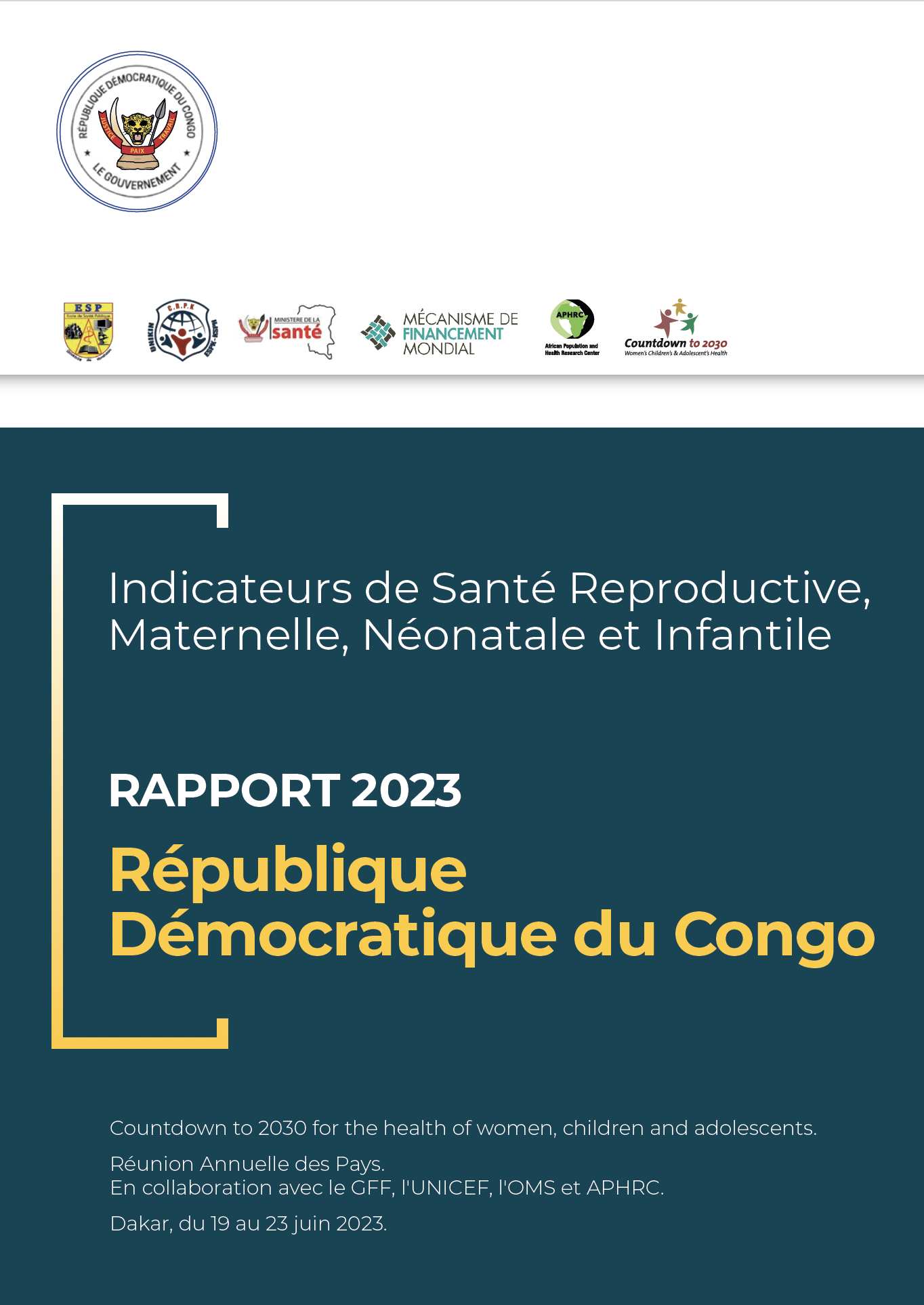 Citation: République Démocratique du Congo Countdown to 2030 Collaboration, République Démocratique du Congo Indicateurs de Santé Reproductive, Maternelle, Néonatale et Infantile Rapport 2023, , 2023,